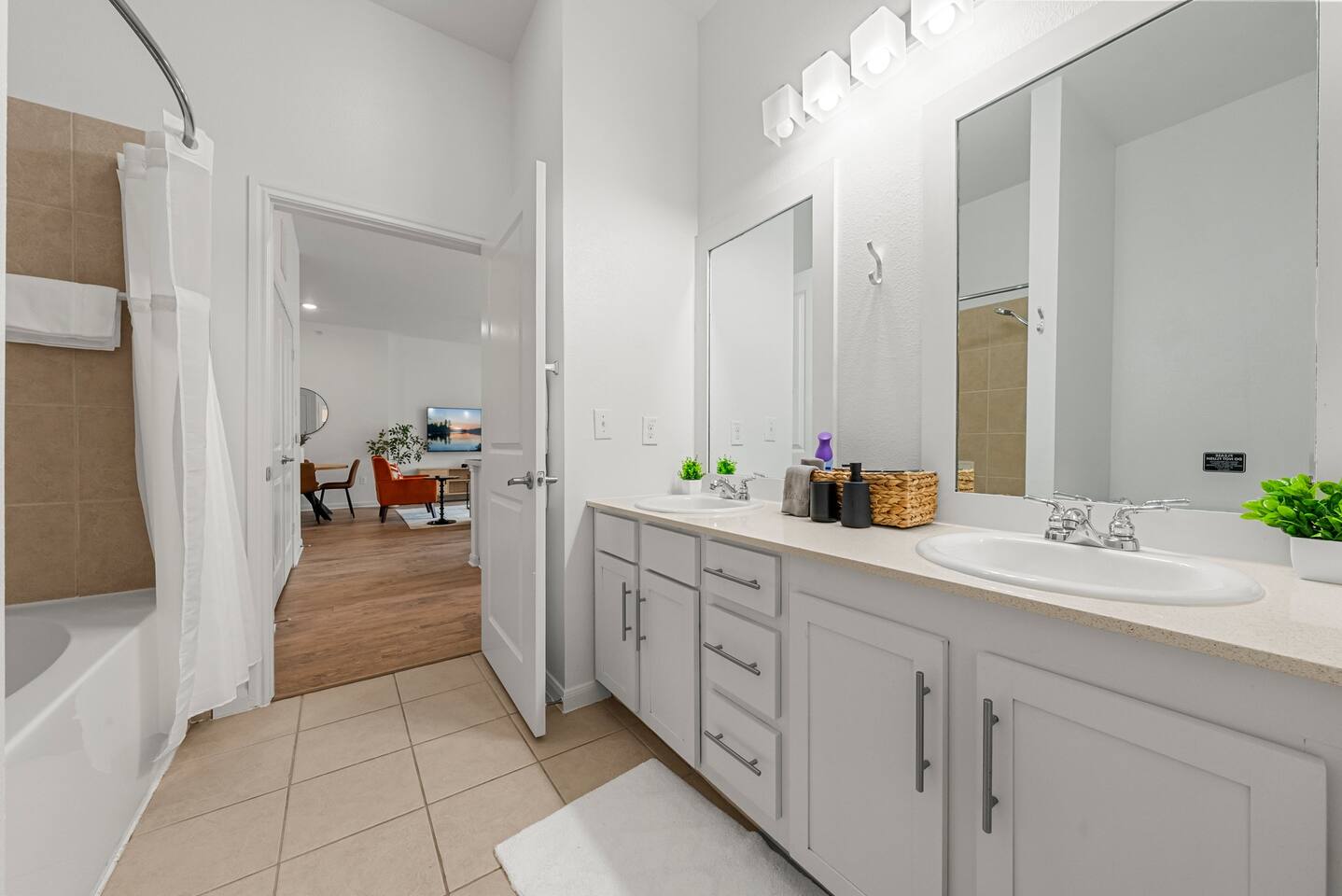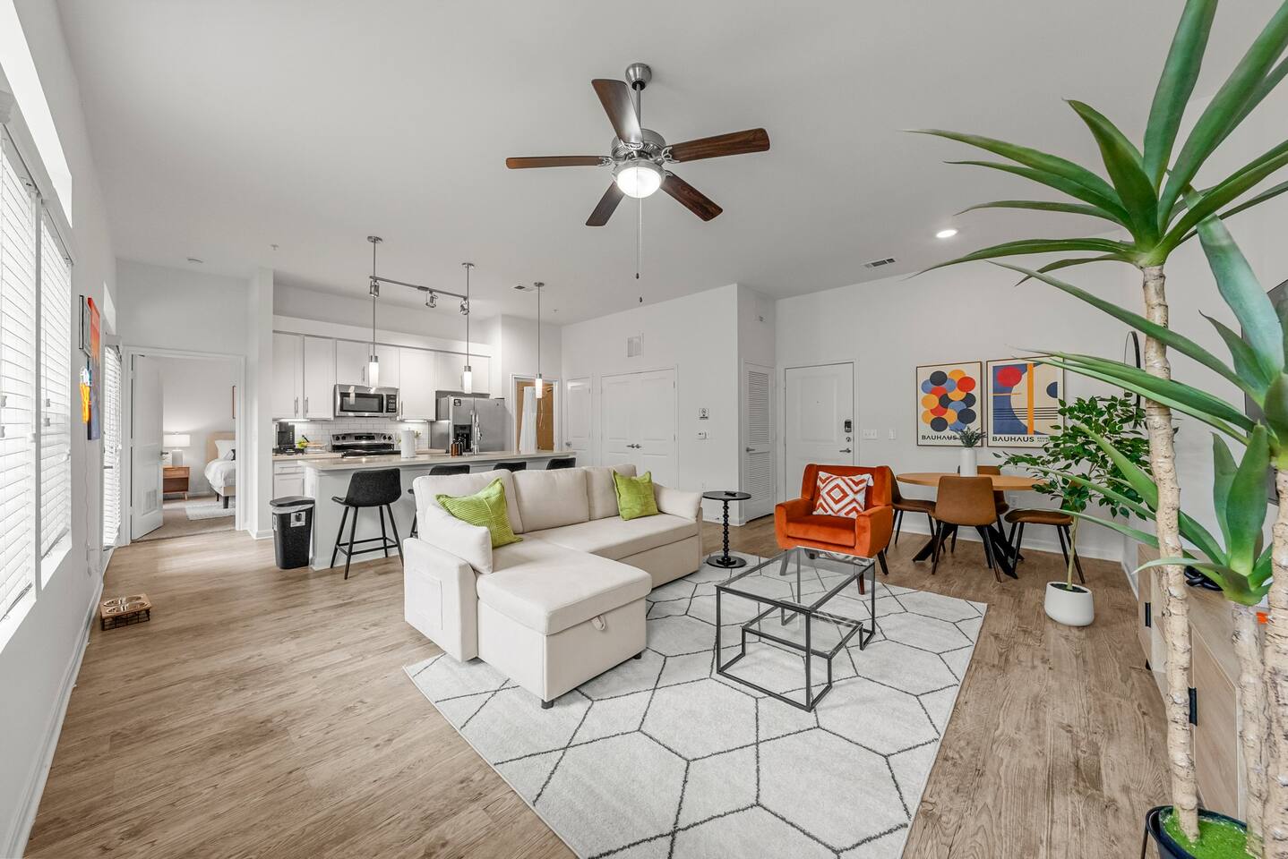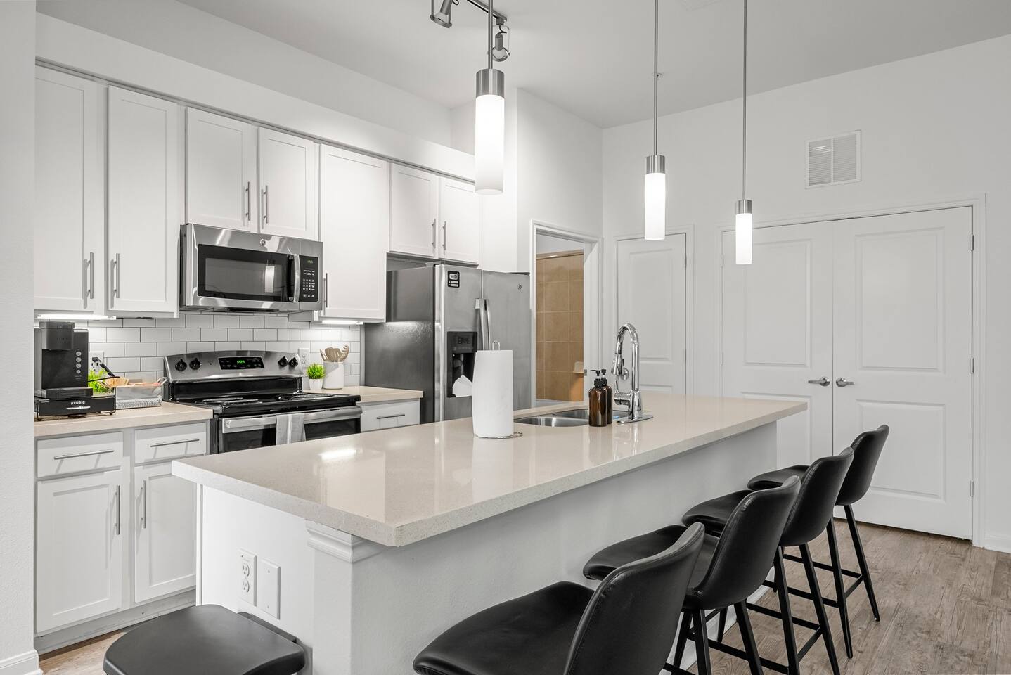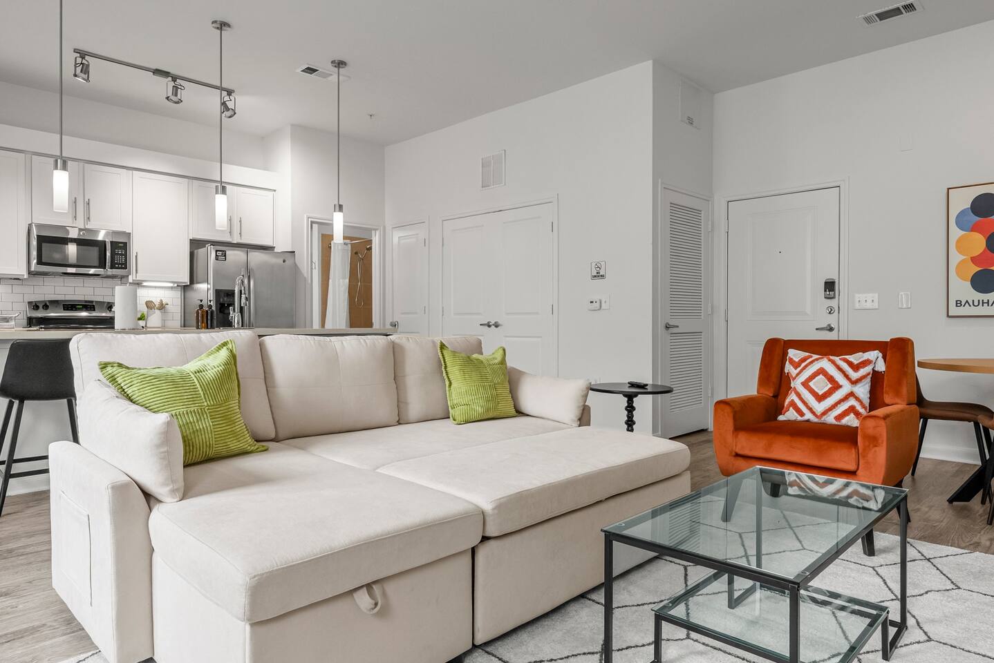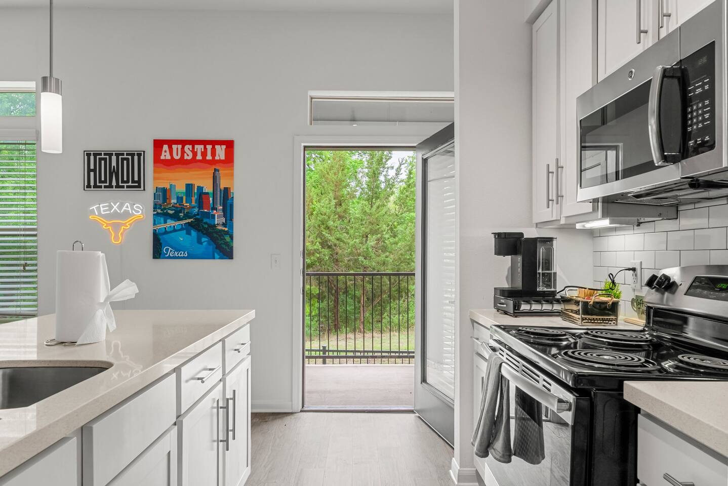 Welcome to your stylish and spacious home in Riverside, a rapidly growing and vibrant neighborhood just minutes from Downtown Austin. This 2 bedroom, 2 bathroom apartment is thoughtfully designed for comfort, productivity, and relaxation. Whether you're in town for business, leisure, or an extended stay, you'll find everything you need for a seamless experience. 🏡 Key Features: ✔ Prime Location: 🚗 8 mins to Downtown Austin (Rainey Street) 🚗 6 mins to Austin-Bergstrom Airport 🚗 14 mins to Zilker Park (ACL Festival) 🚗 14 mins to Circuit of the Americas (CotA) ✔ Comfort & Convenience: 🛏 Queen beds with 12” luxury memory foam mattresses, plush pillows & down comforters ❄️ Central air conditioning & heating for year-round comfort 🚿 Two full bathrooms stocked with fresh towels & essentials 🛋 Queen-sized sleeper sofa for extra guests 🍳 Fully-equipped kitchen with cookware, bakeware, dinnerware, rice cooker, toaster & more ☕ Complimentary coffee & tea with Keurig coffee machine 🏡 In-unit washer & dryer for convenience 🚗 Free gated parking 🧸 Portable crib (per request) 🥣 Kids high chair (per request) ✔ Work & Entertainment: ⚡ Ultra-fast WiFi (300 Mbps - Perfect for remote work) 📺 Living Room: 65” Smart TV w/ access to Netflix, YouTube, Disney+, HBO Max, Hulu, ESPN+, and more 📺 Bedrooms: 45” Smart TV w/ access to Netflix, YouTube, Disney+, HBO Max, Hulu, ESPN+, and more 💻 Dedicated workstations in each bedroom ✔ Space Layout: 📏 1,290 sqft of thoughtfully designed space 🏠 2 bedrooms | 2 bathrooms ⬆️ 1st floor ✔ Seamless Stay: 🔑 Self-check-in & checkout for flexibility 📲 24/7 virtual support for quick assistance 🏢 Access to community amenities: lobby, grills & courtyards